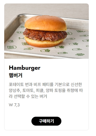 9. 햄버거는 기본에 충실한 단순한 메뉴로, 감자 번과 두툼한 비프 패티로 구성되어 있습니다. 고객의 취향에 따라 양상추, 토마토, 피클, 양파 등의 토핑을 추가하여 나만의 버거를 만들 수 있습니다. 간결하면서도 깊은 맛을 느낄 수 있는 이 메뉴의 가격은 7,300원입니다.