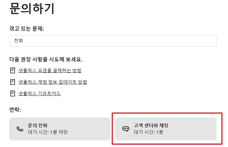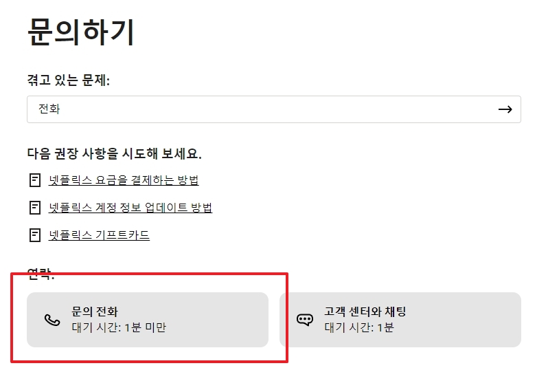 6. 전화 상담 옵션을 선택하면 넷플릭스 고객센터 전화번호가 표시됩니다.