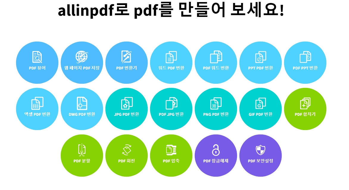1. PDF 파일을 한글 파일로 변환하기 위해 첫 번째로 고려할 수 있는 방법은 All in PDF와 같은 온라인 홈페이지를 이용하는 것입니다. 아래 사진에서 보이는 화면은 해당 서비스의 메인 페이지로, 간단한 인터페이스를 제공합니다.