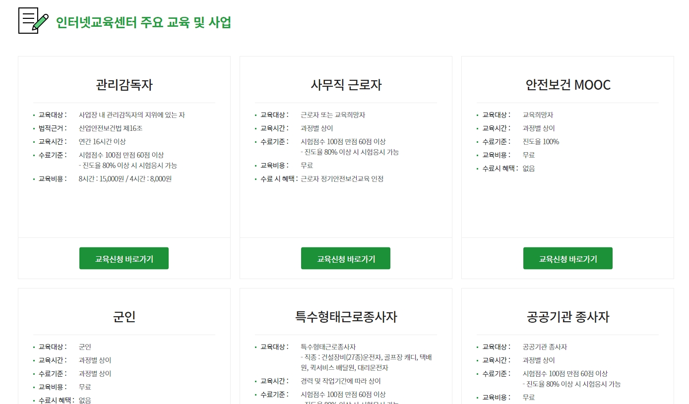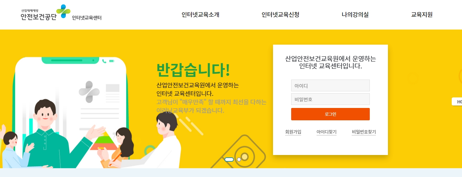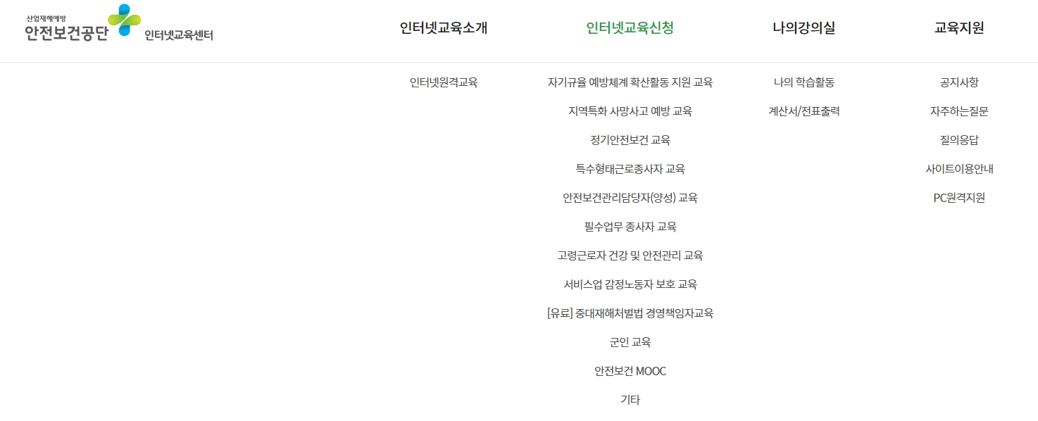 산업안전보건공단 인터넷 교육센터 홈페이지