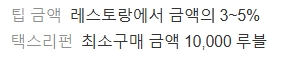 4. 러시아에서는 팁 문화가 자리 잡고 있습니다. 레스토랑에서는 계산 금액의 3~5%를 팁으로 남기는 것이 일반적이며, 고급 레스토랑에서는 이보다 더 많은 금액을 팁으로 줄 수도 있습니다. 팁은 서비스 제공자의 노력과 친절함에 대한 감사의 표시로 여겨지며, 호텔의 포터나 택시 운전사에게도 소액의 팁을 건네는 것이 예의로 간주됩니다. 또한, 일정 금액(10,000루블 이상)의 쇼핑 후에는 택스리펀을 신청할 수 있으므로, 여행 중 이 혜택을 적절히 활용하면 여행 비용을 줄이는 데 유용합니다.