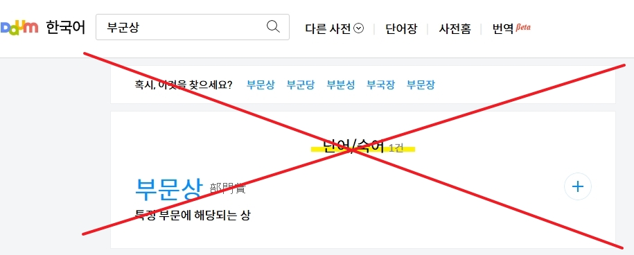 2. 부군상이라는 단어를 검색하면 결과가 나오지 않습니다. 이는 공식적으로 인정된 단어가 아니며, 다음사전뿐만 아니라 네이버 사전 등 주요 사전에서도 동일한 결과를 확인할 수 있습니다. 따라서 부군상은 비공식적이거나 잘못 사용된 표현일 가능성이 있습니다.
