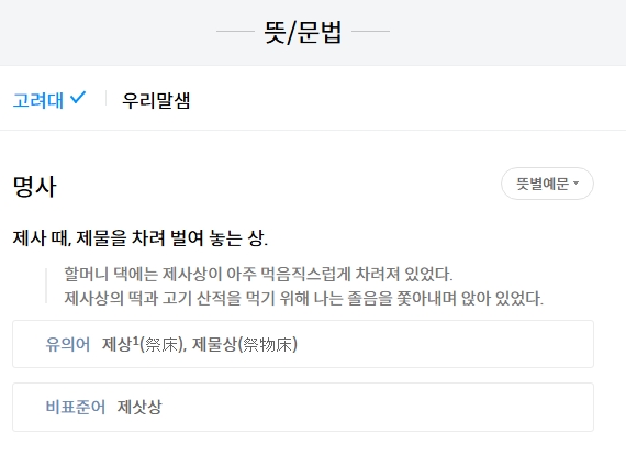 4. 상의 의미를 확인해 보면 음식을 차려놓고 먹을 수 있도록 나무나 기타 재료로 다리를 만들고 그 위에 판을 얹어 만든 물건이라는 뜻이 있습니다. 이는 일반적으로 우리가 식사를 할 때 사용하는 식탁이나 제사상과 같은 물건을 가리킵니다. 따라서 제사나 의식을 위한 상은 이 정의에 부합합니다.