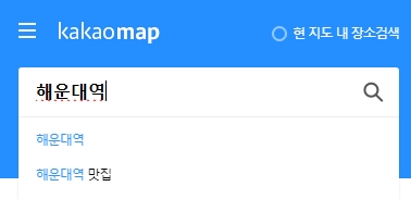 2. 검색창에 해운대역을 입력하여 검색 결과를 확인합니다. 해운대역은 부산 지하철 2호선에 위치한 주요 역으로, 주변 관광지와의 접근성이 뛰어납니다. 입력된 검색어에 따라 주변의 관련 장소 및 상세 정보가 표시됩니다.