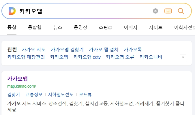 1. 카카오맵에 접속합니다. 카카오맵은 장소 검색, 길찾기, 실시간 교통 정보, 지하철 노선도, 거리 측정, 즐겨찾기 폴더 기능 등 다양한 서비스를 제공하여 사용자들이 편리하게 원하는 정보를 찾을 수 있도록 지원합니다.