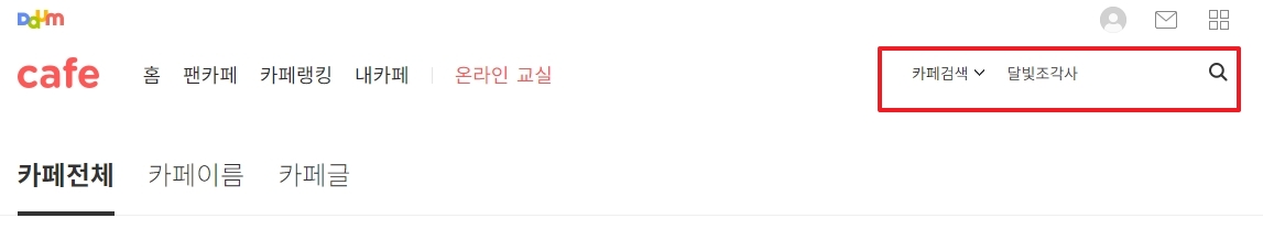 5. 관심 있는 카페를 검색하려면 화면 우측 상단에 있는 검색창을 사용하면 됩니다. 이곳에 원하는 키워드를 입력하면 관련된 카페 목록이 표시됩니다. 예를 들어, 특정 취미나 주제를 입력하면 그와 관련된 카페들을 한눈에 확인할 수 있습니다. 원하는 카페가 있다면 바로 클릭해 가입을 진행하세요.