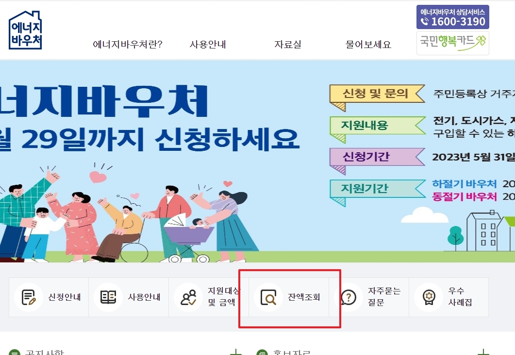 에너지 바우처 지원 금액, 잔액 조회 방법