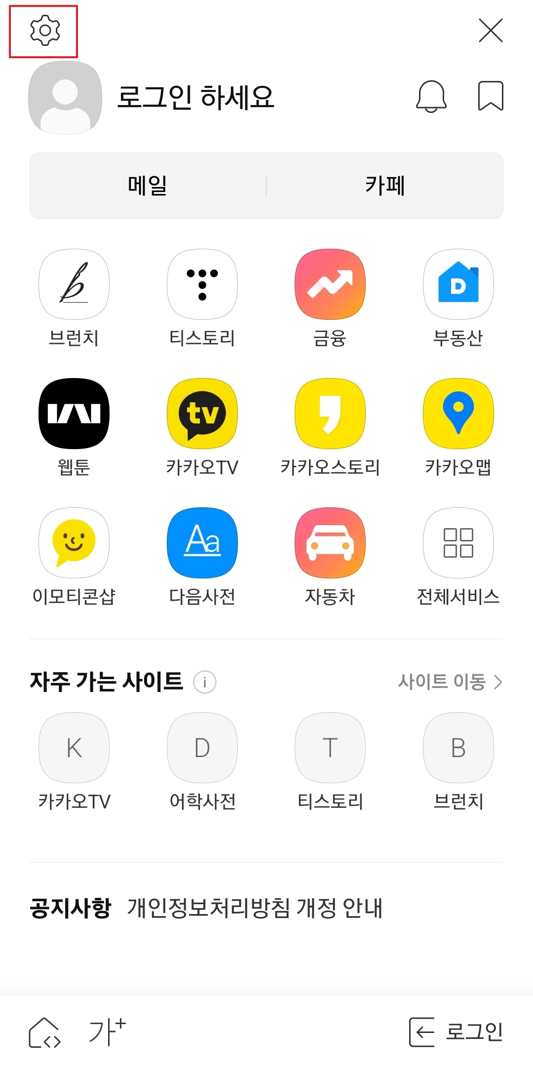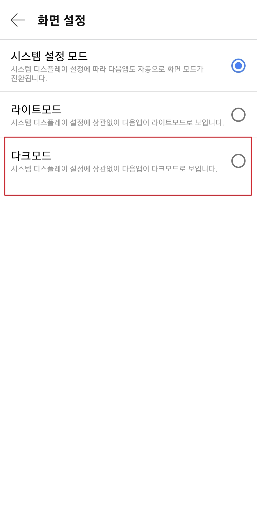 다음 다크모드 설정 - 모바일
