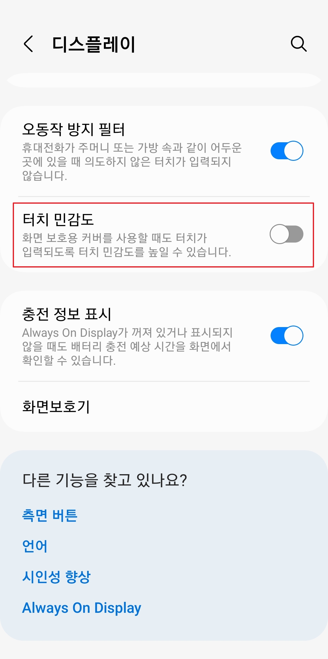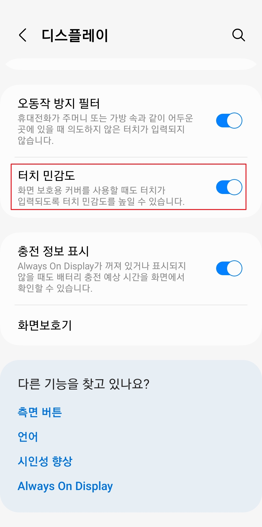 휴대폰 터치 민감도 설정 변경