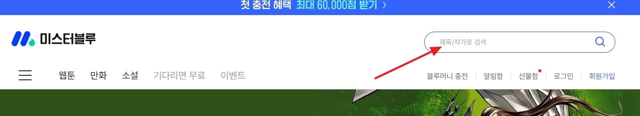 6. 오른쪽 상단에 있는 검색창을 활용해보세요. 여기에 보고 싶은 작품 제목이나 작가 이름을 입력하면 관련된 모든 작품들이 한눈에 나옵니다. 검색 기능이 꽤 정확해서 찾고자 하는 만화 바로 확인할 수 있어요.