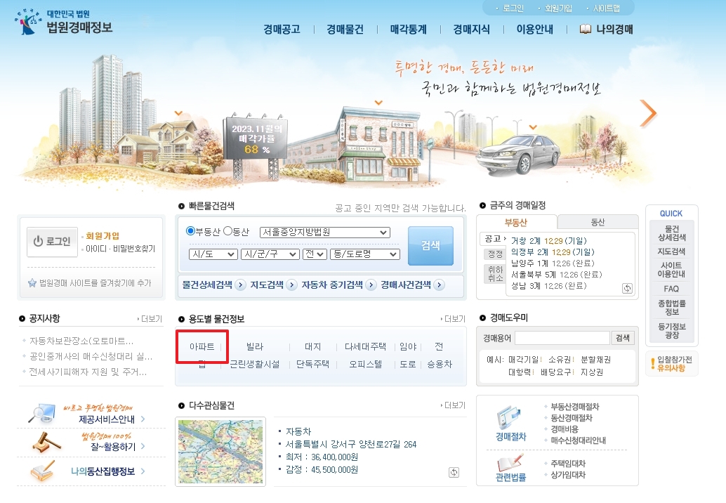 아파트 경매 사이트 (www.courtauction.go.kr)