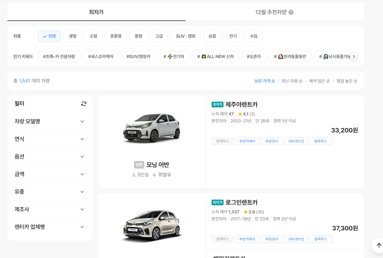 제주도에 도착해서 짐만 풀면 바로 떠날 수 있다는 점이 렌터카의 매력인데, 막상 가격 비교 사이트에 들어가면 같은 차종이 잔뜩 떠서 헷갈리실 거예요.