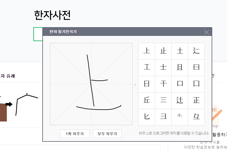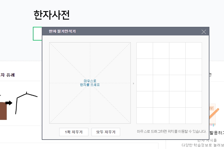 이 기능이 첫선을 보인 건 약 2013년 무렵으로, 서비스 출시 10년이 훌쩍 넘었을 거예요. 당시 스마트폰 보급이 빠르게 확대되면서 모바일 웹 환경을 고려해 추가된 기능이었는데, 손가락이나 스타일러스로 화면 위에 획을 그리면 AI가 획순을 분석해 관련 한자를 추천해 주던 방식으로 시작됐습니다.