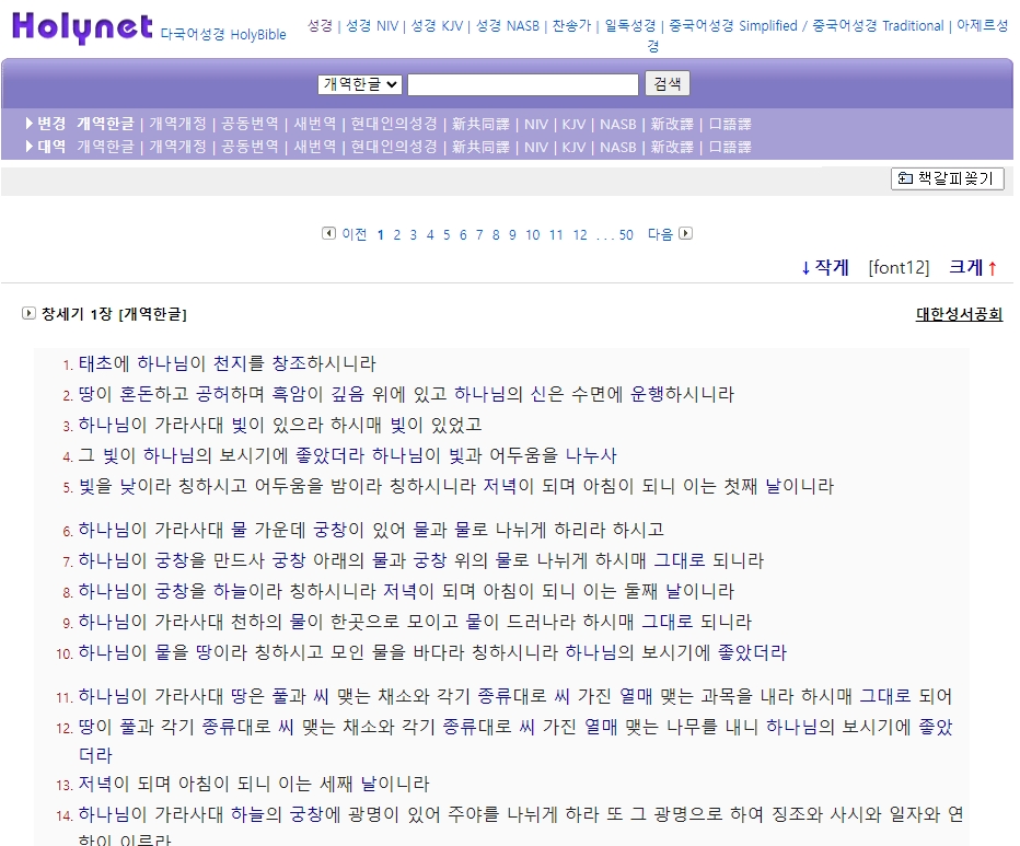holynet에 접속하면 성경 번역본을 선택할 수 있는 메뉴가 바로 보입니다. 개역개정, 개역한글, 현대어 성경 등 다양한 버전 중 본인이 익숙한 것을 고르면 됩니다. 또한 검색 기능을 이용해 단어나 구절을 즉시 찾을 수 있어 정말 편리합니다.