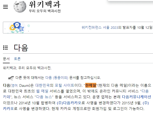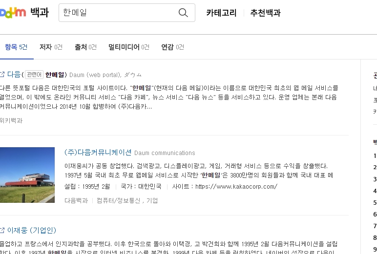 ‘다음백과’ 검색창에 ‘한메일’ 키워드를 입력하면 관련된 다양한 정보가 뜹니다. 특히 위키백과나 관련 아카이브 링크로 연결되기도 하며, 구체적인 연혁과 서비스의 흐름을 파악할 수 있습니다.