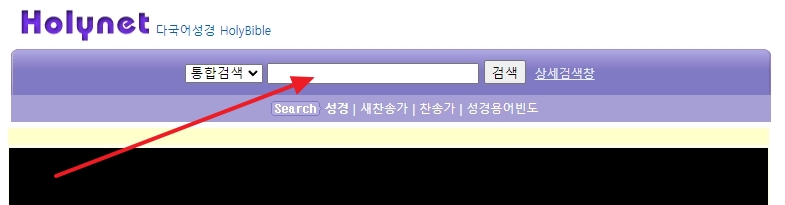 사이트에 접속하면 상단의 검색창에 원하는 단어를 입력하면 됩니다. 단일 단어만 입력해도 관련 구절이 자동으로 정리되어 나옵니다.