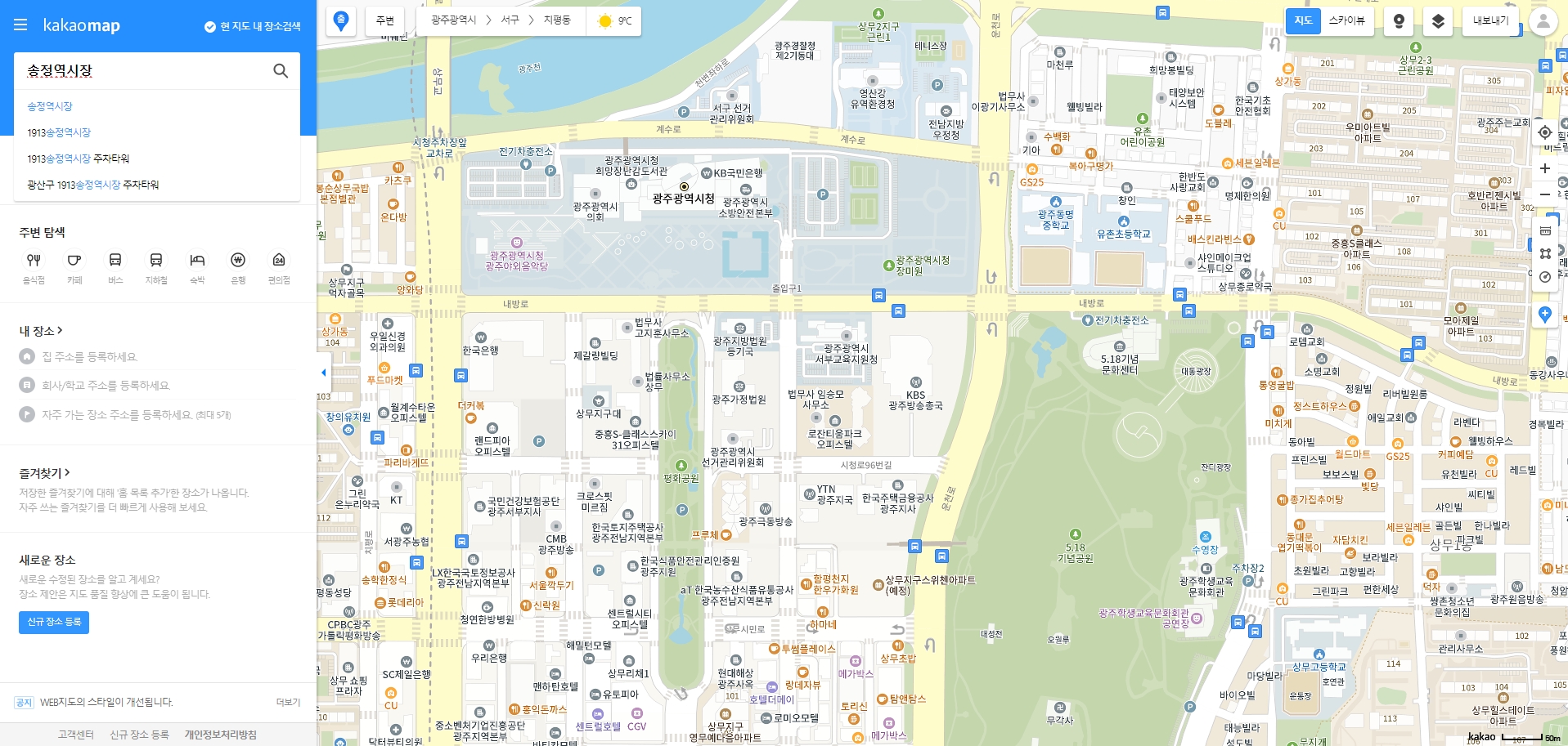 카카오맵에서 장소를 정확하게 찾으려면 너무 대충 검색하기보단 정확한 명칭을 입력하는 게 효과적입니다. 예를 들어 '송정역 시장'은 잘 안 나와도 '1913송정역시장'은 바로 찾아지는데, 이는 카카오맵이 명확한 키워드 중심으로 작동하기 때문입니다. 검색 전 자동완성 제안도 적극 활용해보세요.