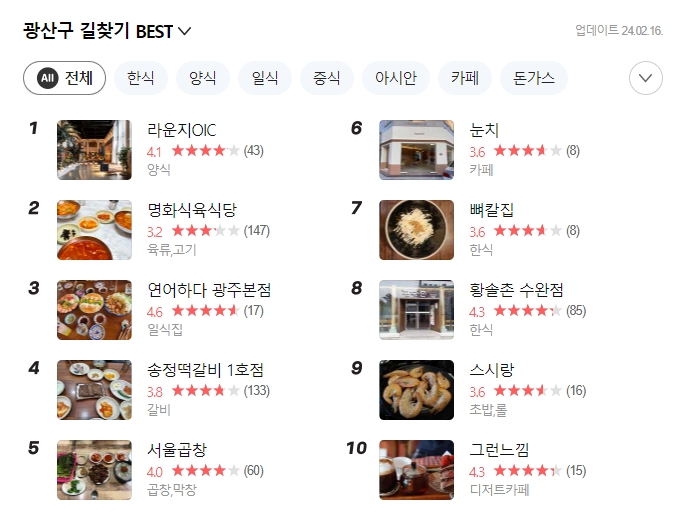 '송정역 시장'처럼 일반적인 명칭으로 검색하면 결과가 안 나올 수도 있습니다. 이럴 땐 '1913송정역시장'처럼 정확한 이름을 입력하면 원하는 결과를 얻을 수 있습니다.