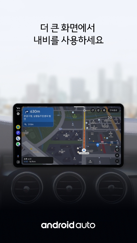 안드로이드오토 및 애플 카플레이와 연동 시, 차량 디스플레이를 통해 카카오내비의 경로 안내, 목적지 설정, 음성 명령 등을 더 크게, 더 안전하게 사용할 수 있습니다. 운전 중 스마트폰 조작 없이도 내비게이션 사용이 가능하다는 점에서 큰 장점입니다.