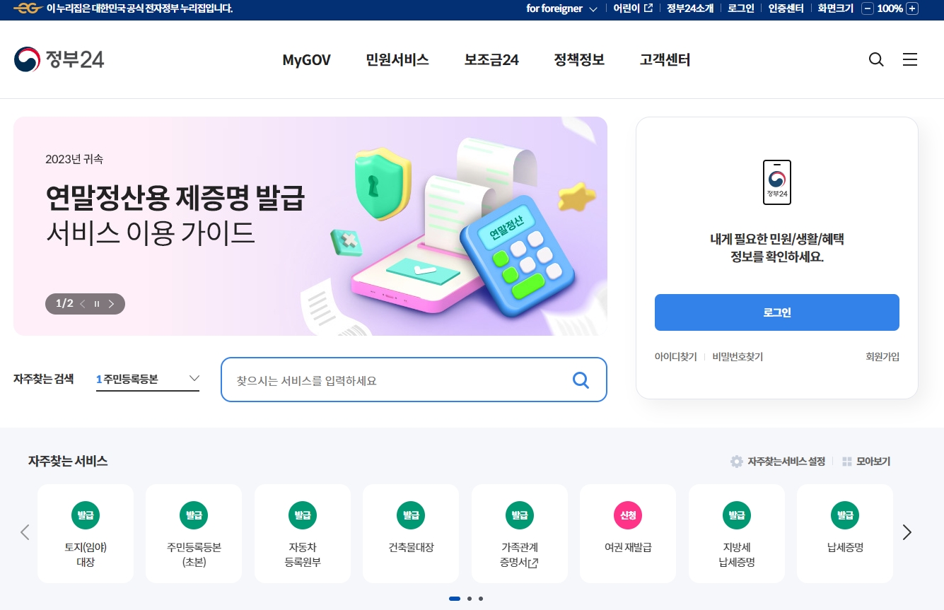민원24시 홈페이지 (www.gov.kr/yearend_main.html)