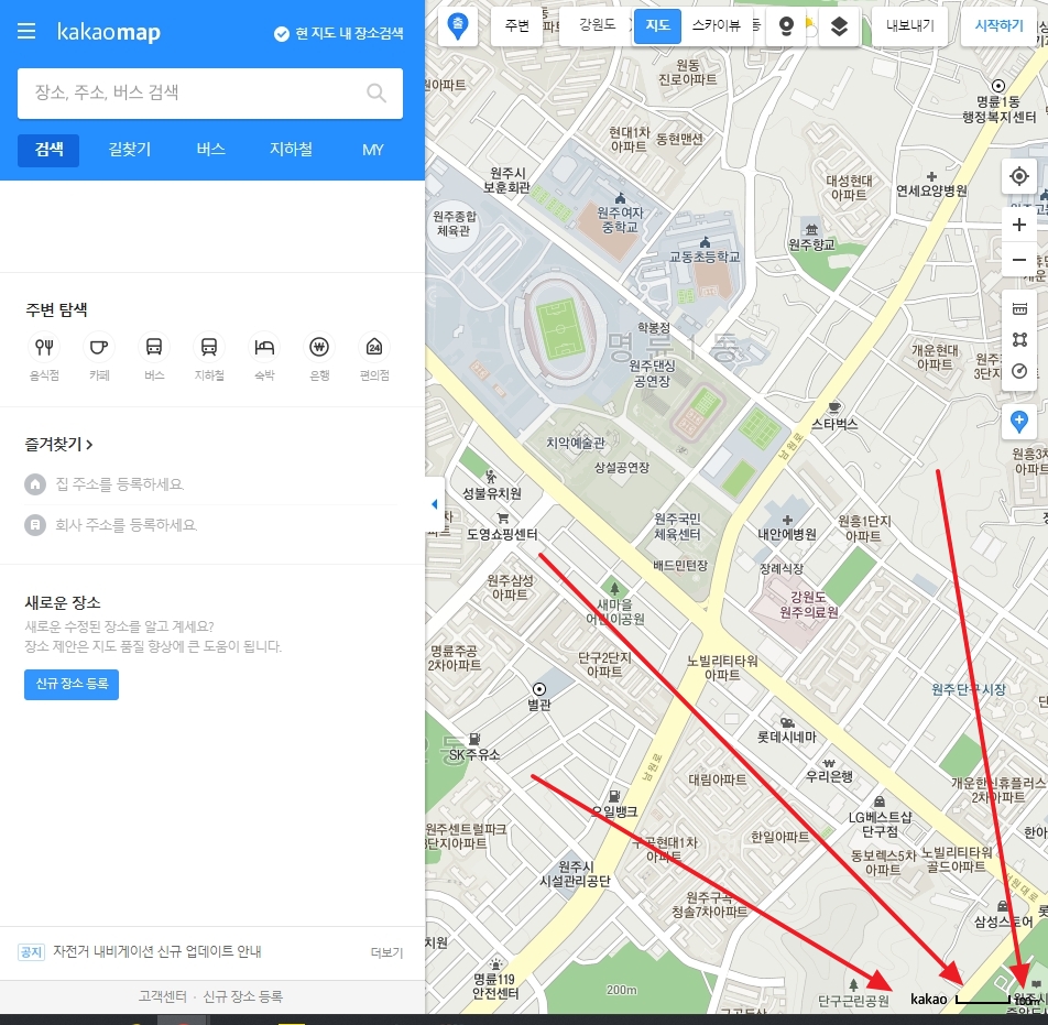 브라우저에서 카카오맵 공식 웹사이트에 접속하거나 모바일 앱을 실행하며, 최신 버전으로 업데이트되어 있어야 정상적으로 기능을 이용할 수 있습니다. 단, PC와 모바일 화면 구성은 다를 수 있습니다.
