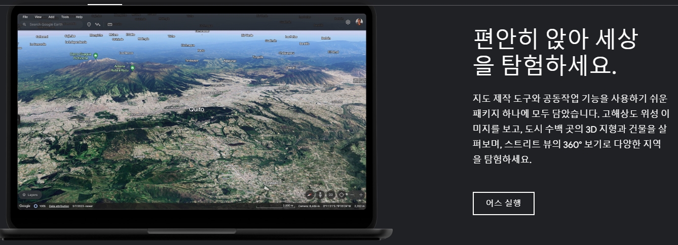2. 웹 실행 버튼이 강조되어 있어 별도 소프트웨어 설치 없이도 브라우저에서 구글어스를 바로 실행할 수 있는 장면입니다.