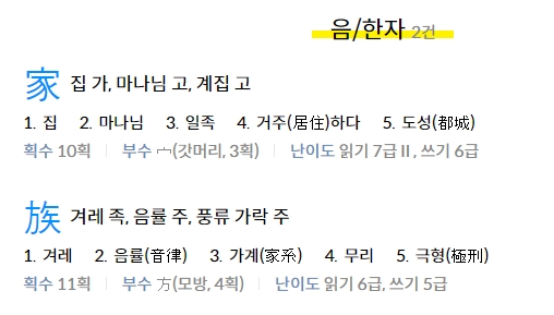 이렇게 직접 한자를 입력해서 찾는 방법 말고도, 한글로 '가족'이라고 검색해도 관련 한자들을 찾아주기 때문에 한자를 몰라도 충분히 활용할 수 있습니다. 정말 편리하지 않나요.