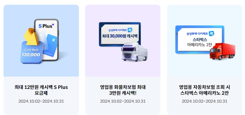 삼성카드는 현금처럼 쓸 수 있는 캐시백 혜택도 아주 다양하게 챙겨줘요. 예를 들어서 S Plus 요금제라는 걸 쓰면 최대 12만원까지 돌려받을 수 있고, 영업용 화물차를 운전하시는 분들은 최대 3만원까지 캐시백을 받을 수 있습니다.