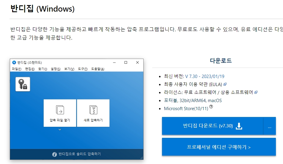 반디집 역시 홈페이지에서 다운로드 버튼을 눌러 설치 파일을 받고, 그 파일을 실행해서 설치하면 됩니다. 설치 과정이 복잡하지 않아서 컴퓨터를 잘 모르는 사람도 쉽게 할 수 있을 거예요. 알집과 반디집 둘 다 써보고 마음에 드는 것을 계속 써도 좋고, 둘 다 설치해두고 필요에 따라 번갈아 가며 써도 괜찮습니다.