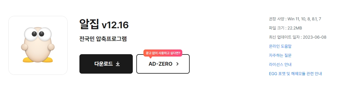 egg 파일을 열기 위해서 가장 먼저 할 일은 관련 프로그램을 구하는 것입니다. 여러가지가 있지만 가장 유명한 알집을 기준으로 설명해 드릴게요. 우선 인터넷 검색창에 '알집'이라고 검색해서 공식 홈페이지로 들어가야 합니다. 다른 곳이 아닌 공식 홈페이지를 이용하는 것이 안전하고 최신 버전을 받을 수 있어서 좋습니다.