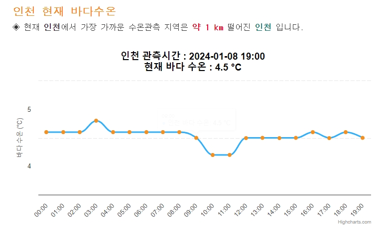 바다수온 정보도 제공되며, 특히 인천 지역의 바다수온은 다른 지역에 비해 차갑다는 특징이 있습니다.