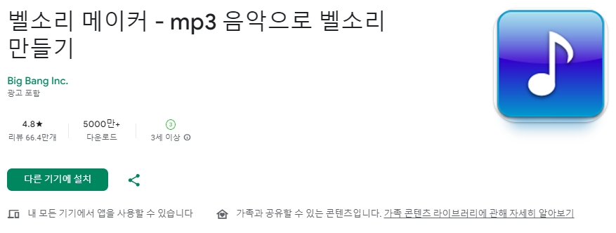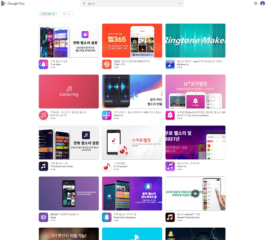 벨소리를 검색하면 다양한 벨소리 앱이 검색 결과에 나타납니다. 이 중에서 몇 가지 앱을 살펴볼 수 있습니다.