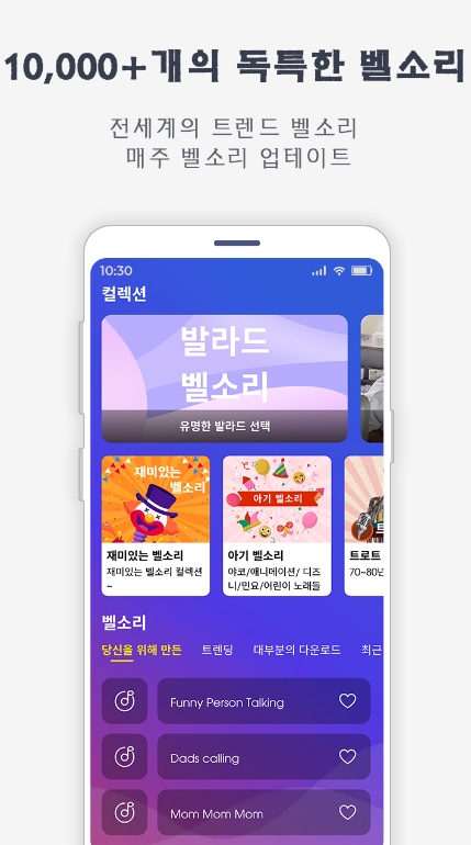 이 앱에는 1만 개 이상의 다양한 벨소리가 포함되어 있으며, 이 중에서 무료로 사용할 수 있는 벨소리를 선택할 수 있습니다. 사용자는 쉽게 설정하고 즐겨찾기를 만들 수 있는 편리한 기능을 제공받을 수 있습니다.