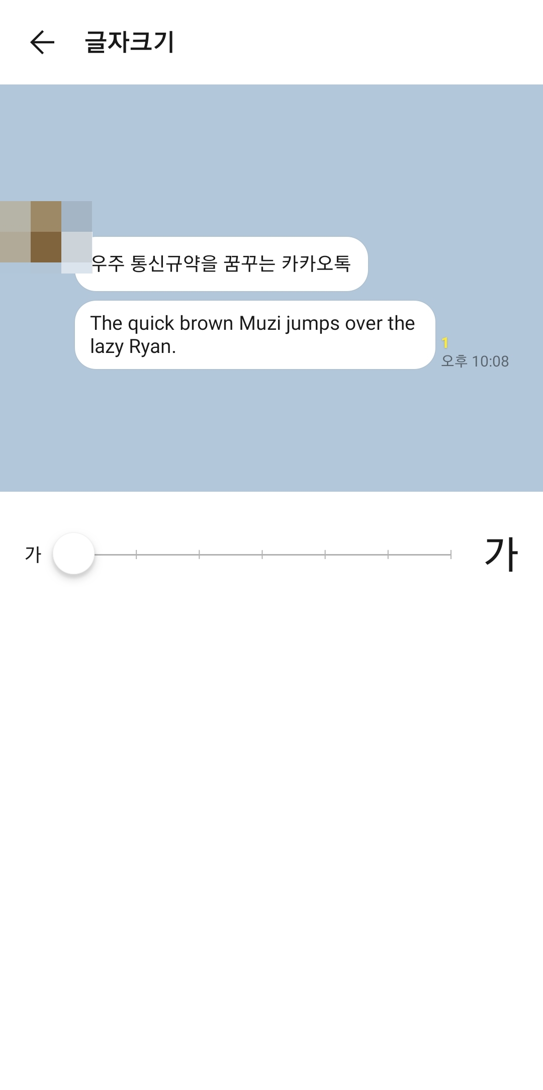 눈이 침침하거나 작은 글씨가 불편하게 느껴졌던 분들이라면 크기를 키워 편안하게 대화를 나눌 수 있고, 반대로 한 화면에 더 많은 내용을 보고 싶다면 크기를 줄여서 사용할 수 있습니다. 자신에게 가장 편안한 크기를 찾는 것이 중요합니다.