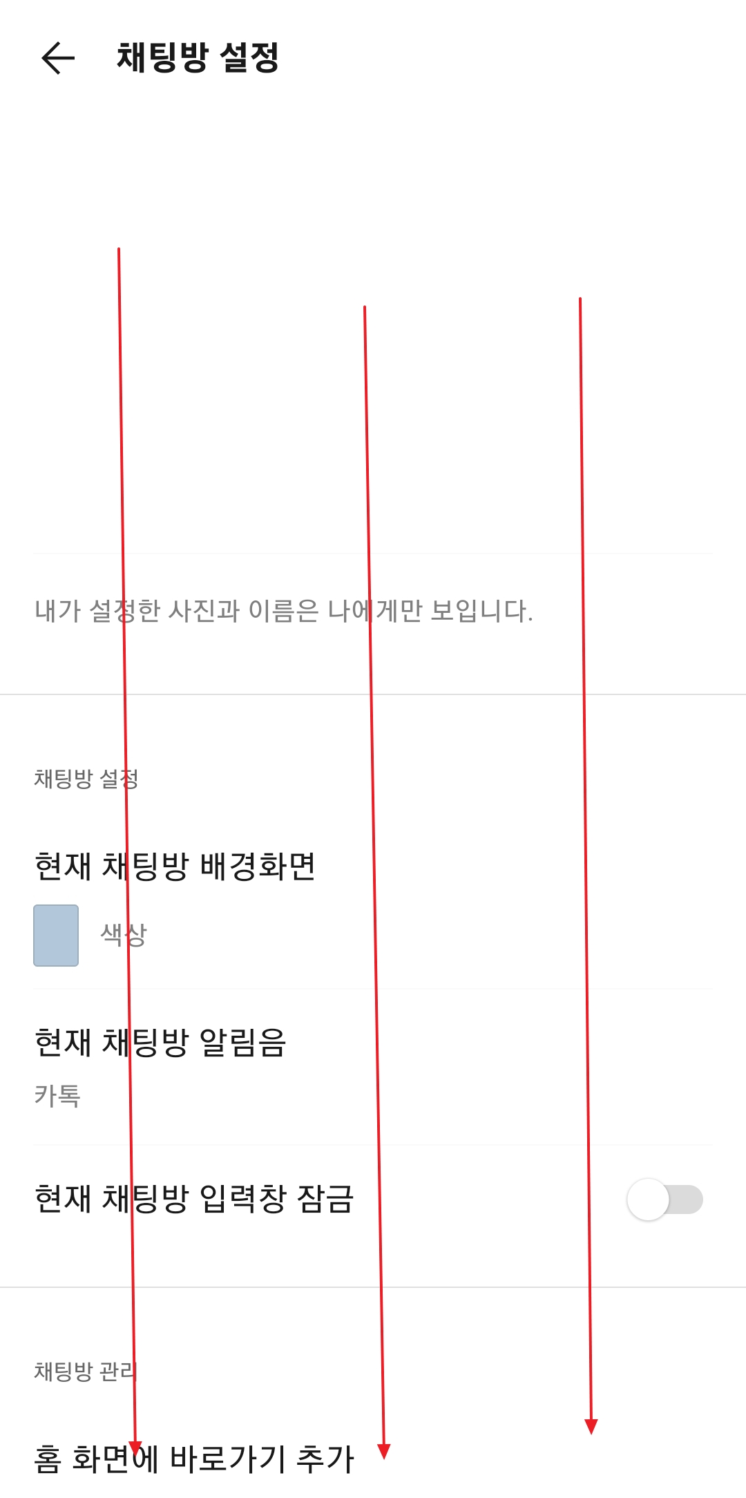 초대하는 방법과 거부하는 방법 모두 이 메뉴 버튼에서 시작한다는 점이 재미있죠? 이 버튼을 누르면 채팅방 관리를 위한 다양한 기능들이 나타납니다. 다음 단계를 잘 따라와 주세요.