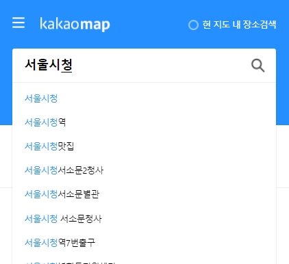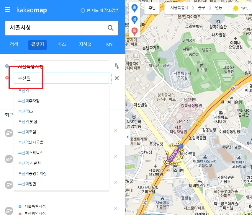 이제 출발하고자 하는 위치를 입력해주시면 되는데요. 저는 예시를 보여드리기 위해 서울시청을 검색해봤어요. 정확한 주소지를 입력하거나 건물의 명칭을 검색창에 넣으면 바로 나오니까 찾기 쉬우실 거예요.