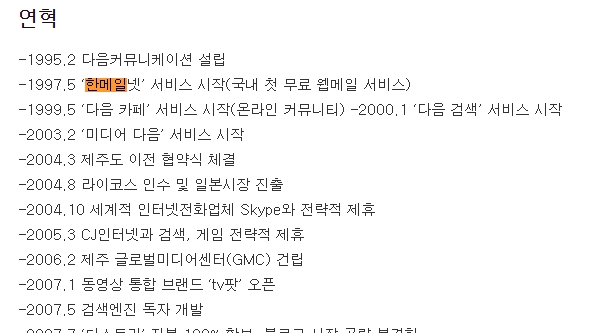 검색 결과를 살펴보면 위키백과나 나무위키 같은 곳에서 상세한 연혁을 볼 수 있는데요. 단순히 메일 기능만 제공한 게 아니라, 인터넷 커뮤니티 문화의 시초라고 할 수 있는 '다음 카페'와도 깊게 연관되어 있습니다.