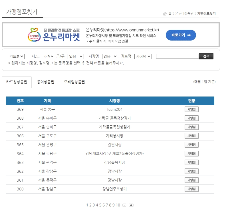 예를 들어 '카드형'을 선택하고 검색하면, 카드형 상품권을 받아주는 시장만 쏙 골라서 볼 수 있겠죠? 괜히 헛걸음하지 않으려면 이 필터 기능을 꼭 활용해 보세요.