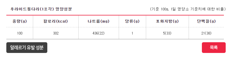 특정 메뉴를 클릭해 보니 금액 대신 영양 성분표만 잔뜩 나오더라고요. 칼로리나 알레르기 유발 성분이 걱정되시는 분들에게는 영양 정보가 유용할 수 있겠네요.