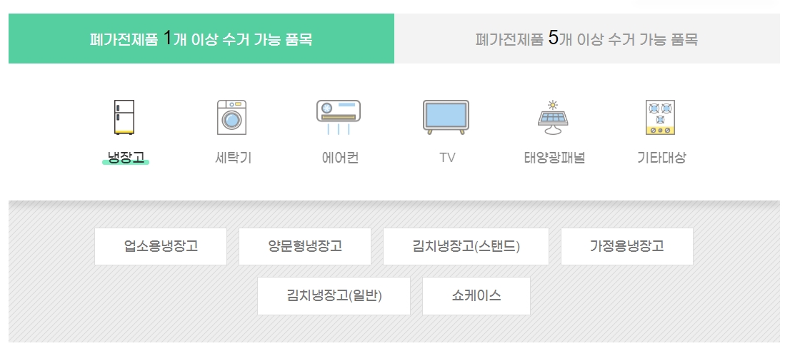 - 냉장고/세탁기/에어컨/TV: 대표적인 단일 수거 가능 품목입니다. 단, 에어컨은 실외기가 분리되어 있어야 하고, TV도 벽걸이라면 떼어 놓으셔야 해요.