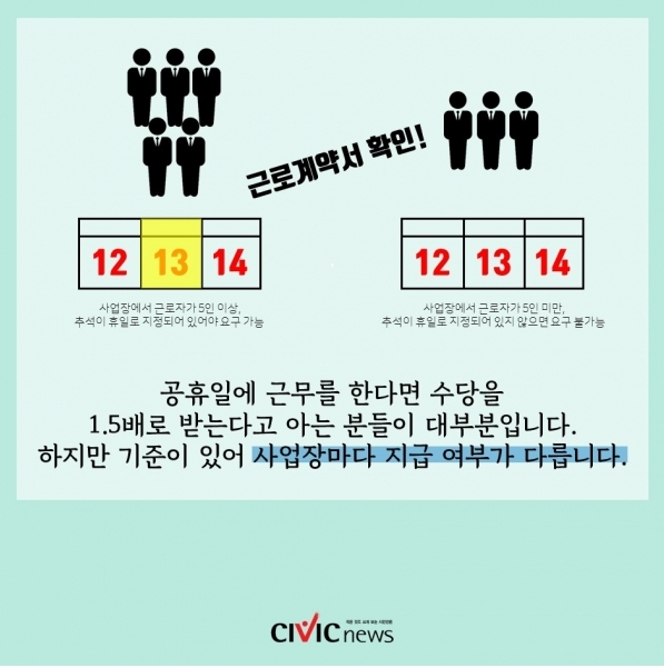 꿀 같은 휴일에 쉬지도 못하고 일터로 나가는 건 솔직히 억울한 일이다. 하지만 이렇게 내 권리를 똑바로 알고 정당한 대가를 확실하게 받아낸다면 월급날에 그나마 큰 위안이 될 거다.