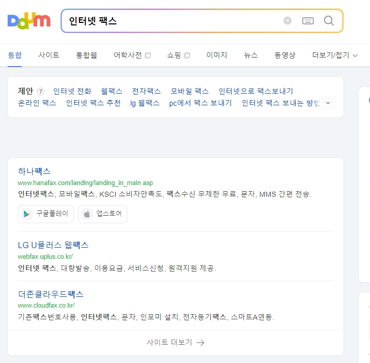 일단 컴퓨터로 보내실 분들은 포털 검색창에 인터넷 팩스 보내는 방법을 검색해 보시면 정말 많은 업체들이 나옵니다. 솔직히 기능이나 방식은 다 거기서 거기라서 아무 곳이나 골라도 크게 상관은 없습니다.