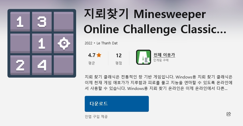 드디어 화면에 떴네요. 예전에 시간 가는 줄 모르고 숫자 맞춰가며 마우스 오른쪽 버튼으로 깃발 꽂던 그 느낌이 그대로 살아있습니다. 복잡한 일 하다가 잠깐 머리 식히기에는 정말 이만한 게 없죠.