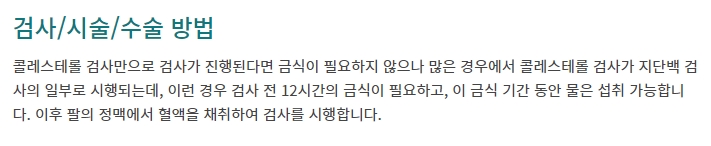 피검사 하러 가기 전에 어떻게 준비해야 하는지도 많이들 물어보시는데요. 정확한 콜레스테롤 검사를 위해서는 최소 12시간 동안 빈속을 유지하고 피를 뽑는 것이 가장 좋습니다. 전날 저녁 일찍 드시고 푹 주무시는 게 좋겠죠.