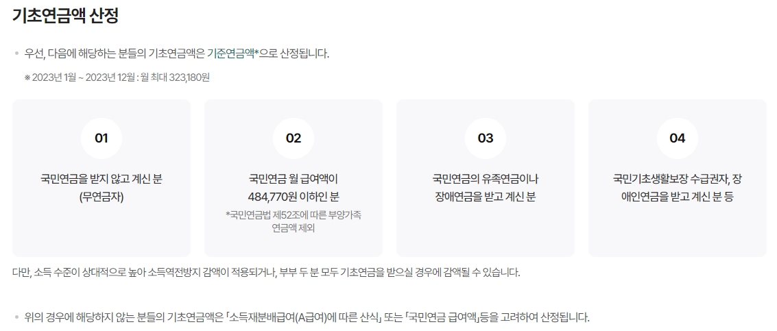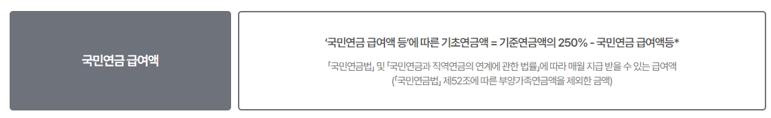 여기서부터는 조금 머리가 아플 수도 있는데, 나라에서 정한 계산법이 따로 있습니다. 다른 연금을 꽤 많이 받고 계신 분들이라면, 내가 받는 연금의 종류에 따라 지원금이 조금 줄어들 수 있도록 설계가 되어 있거든요.