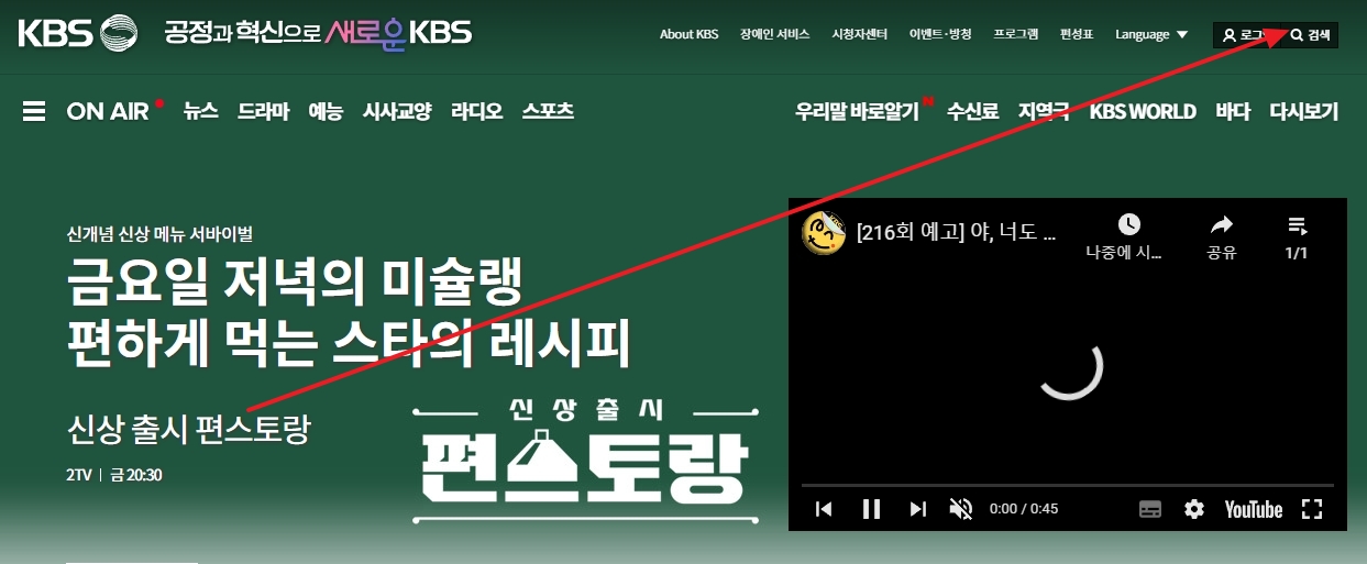 평소 챙겨보던 방송을 놓쳤을 때 가장 먼저 찾아가야 할 곳은 바로 방송국 공식 웹사이트입니다. 컴퓨터나 스마트폰 인터넷 창을 열고, 검색창에 KBS를 입력해서 들어가 주시면 됩니다. 따로 회원가입을 하거나 복잡하게 로그인할 필요가 없어서 어르신들도 아주 편하게 이용하실 수 있습니다.
