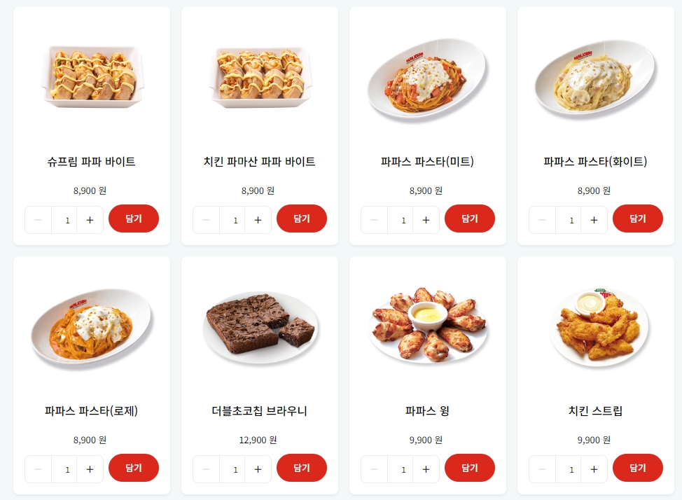 사이드 메뉴도 다양한데, 슈프림 파파 바이트, 치킨 파마산 파파 바이트, 파파스 파스타 미트, 파파스 파스타 화이트, 파파스 파스타 로제, 더블초코칩 브라우니, 파파스 윙, 치킨스트립 등이 있습니다. 특히 파스타는 인기가 높지만, 가격이 9천원으로 다소 비싼 편입니다.