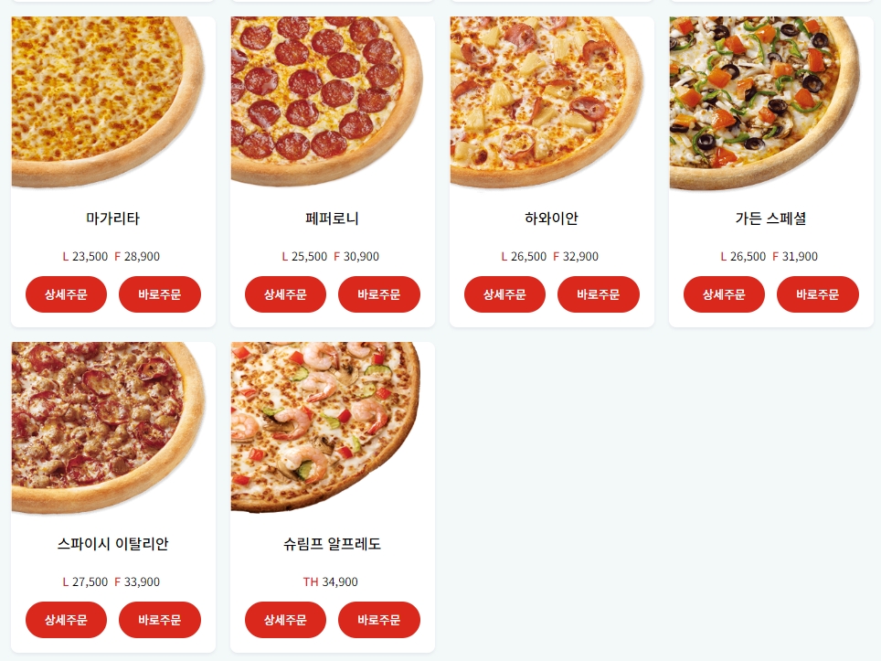 마가리타, 페퍼로니, 하와이안, 가든 스페셜, 스파이시 이탈리안, 슈림프 알프레도 등도 있어 취향에 맞게 선택할 수 있습니다.