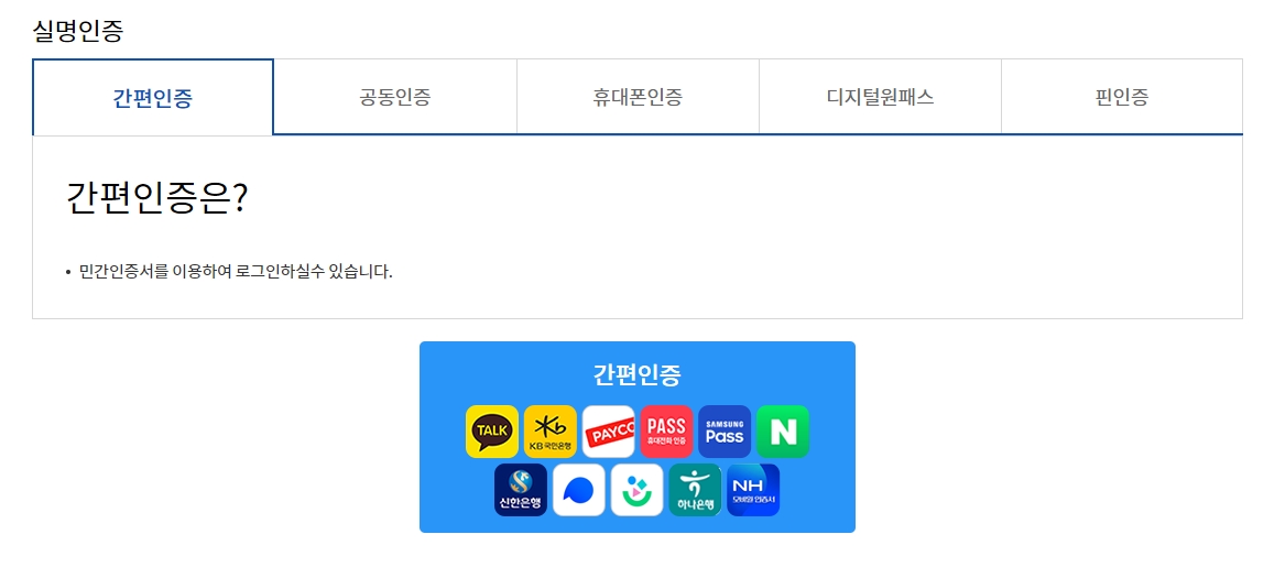 실명인증을 진행합니다. 간편인증, 공동인증, 휴대폰 인증 등을 통해 본인 확인 절차를 거칩니다.