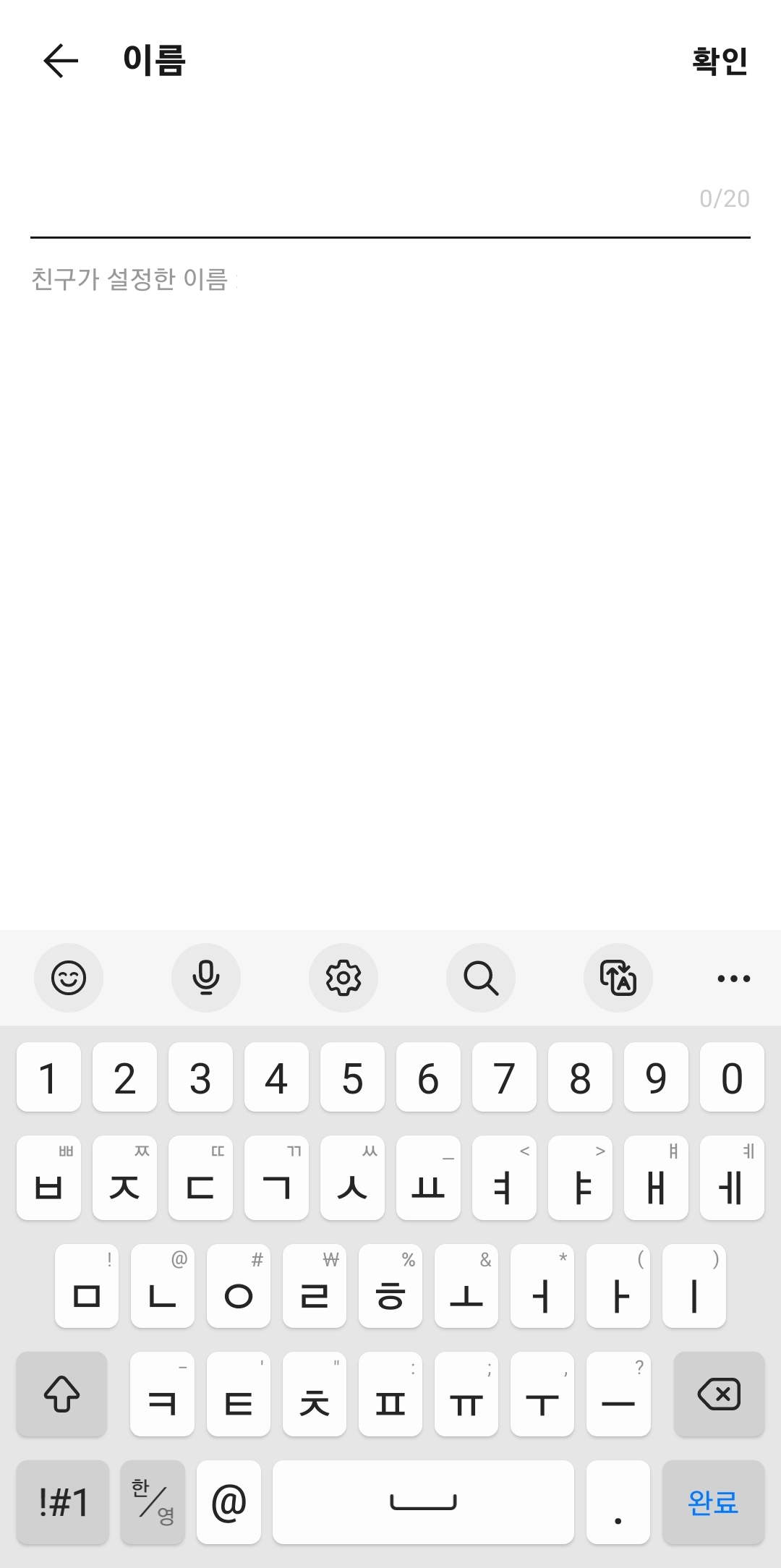 이름 변경 화면에서 친구가 설정한 이름이 하단에 보이고, 사용자가 현재 설정해 놓은 이름이 상단에 표시됩니다. 여기에서 원하는 새로운 이름으로 변경한 후, 확인 버튼을 눌러 변경 사항을 저장하면 과정이 완료됩니다.